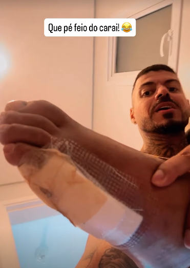 Matheus Vandré teve seu dedo do pé comido por seu cachorro Bradock. Foto: Reprodução/Instagram