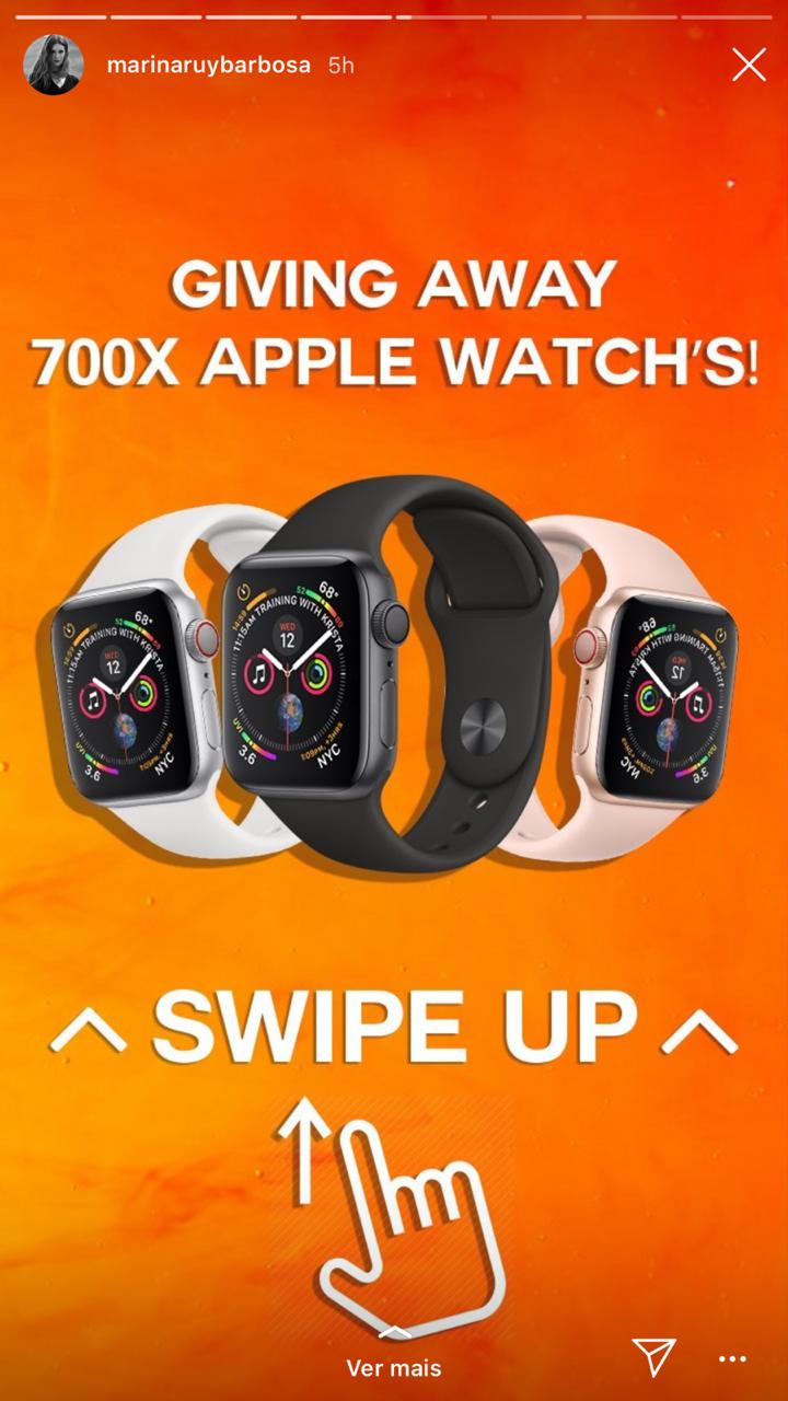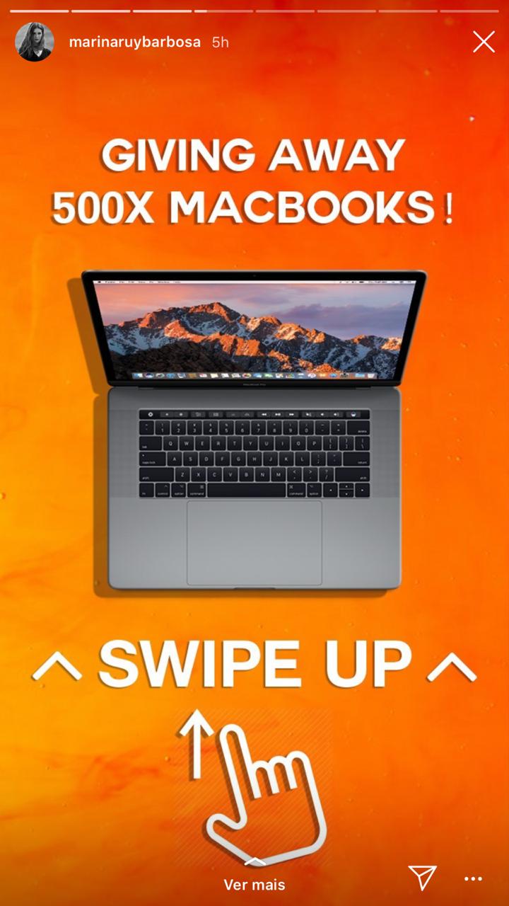 Já nos stories, seis publicações foram expostas, mas com produtos diferentes: em inglês, são oferecidos iPhones, Macbooks e outros eletrônicos caríssimos. Para "ganhar", era necessário deslizar o celular para um link - relatado por fãs da atriz como vírus.