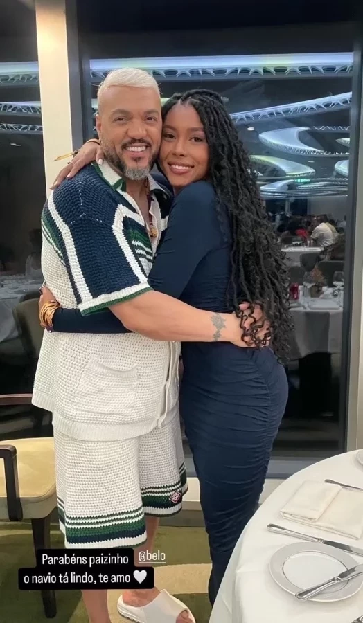 Giovanna Jacobina, irmã de Gracyanne Barbosa, compartilhou em suas redes sociais nesta quarta-feira (11), que mantém uma boa relação com seu ex-cunhado, o cantor. A jovem publicou uma foto abraçada com o cantor em seu navio temático e ainda fez questão de demonstrar seu carinho por ele.