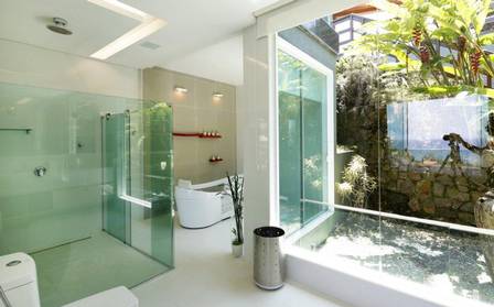 A área ampla da mansão tem academia, sistema de som, piscina, jardim, cofre, sauna e vista para o mar. O local, onde é proibido fumar, ainda tem serviço de limpeza diária, café e produtos de banho inclusos, Wi-Fi e TV por assinatura.