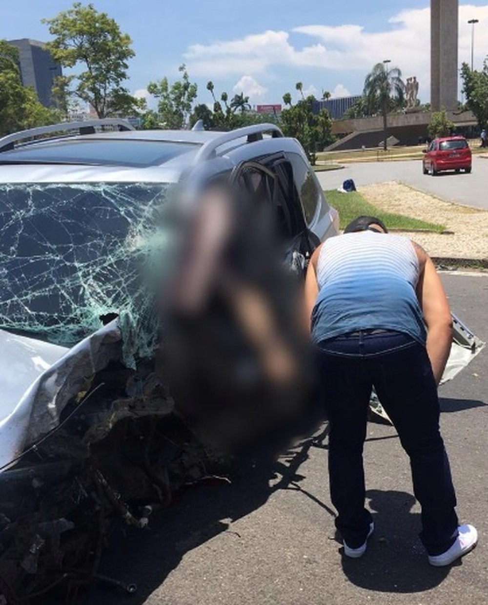 O Corpo de Bombeiros informou que foi acionado às 13h20 para um capotamento na Avenida Infante Dom Henrique. Segundo testemunhas, o carro teria subido o meio-fio e bateu em uma árvore antes de capotar.