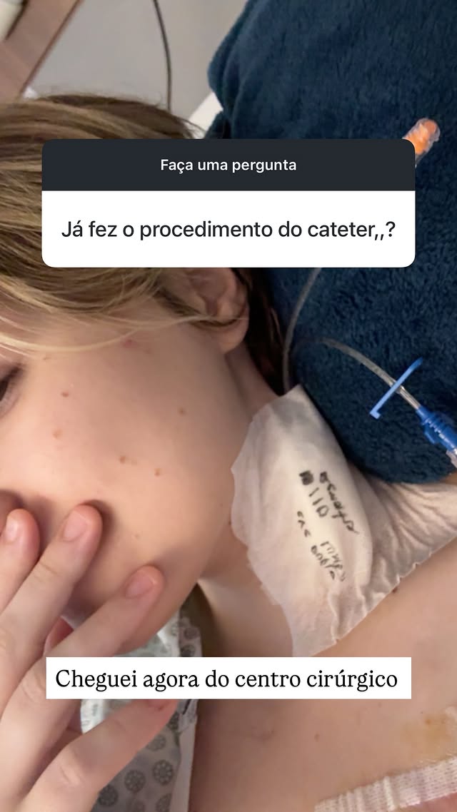 Pelo Instagram, Isabel relatou que passou pela colocação de um cateter e comentou desconforto após o procedimento: “ Voltei faz pouco tempo do centro cirúrgico. Ele [o cateter] dói bastante, então acho que hoje o dia inteiro e amanhã vai doer um pouco ”, escreveu.