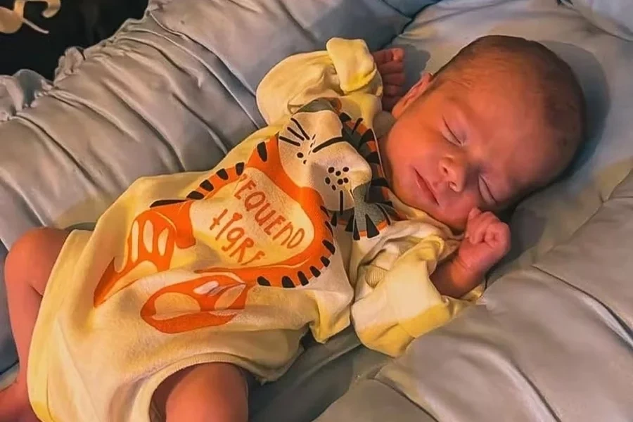 Na primeira foto de Arthur, ele aparece usando uma roupinha escrita "pequeno tigre". O menino nasceu no dia 29 de dezembro, com apenas 32 semanas de gestação. O parto precisou ser antecipado por conta do tratamento contra o câncer de Isabel.