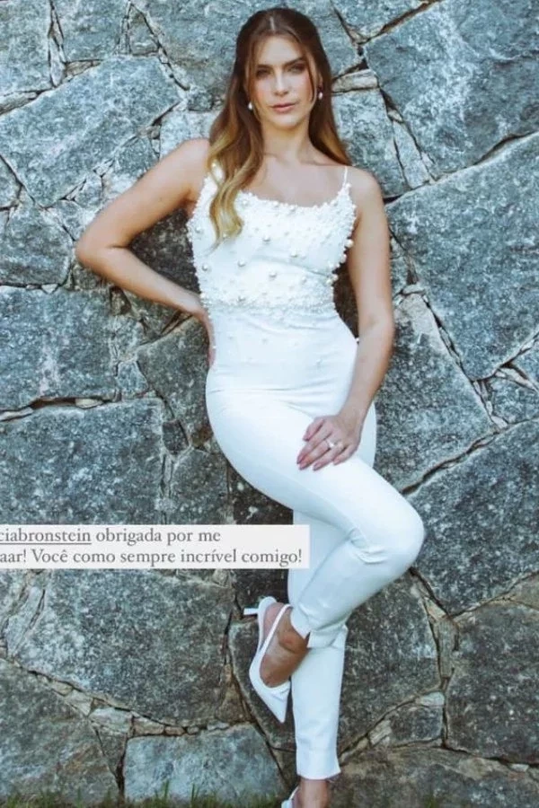 Isabella Santoni usando macação branco com detalhe de pérolas. Foto: Instagram