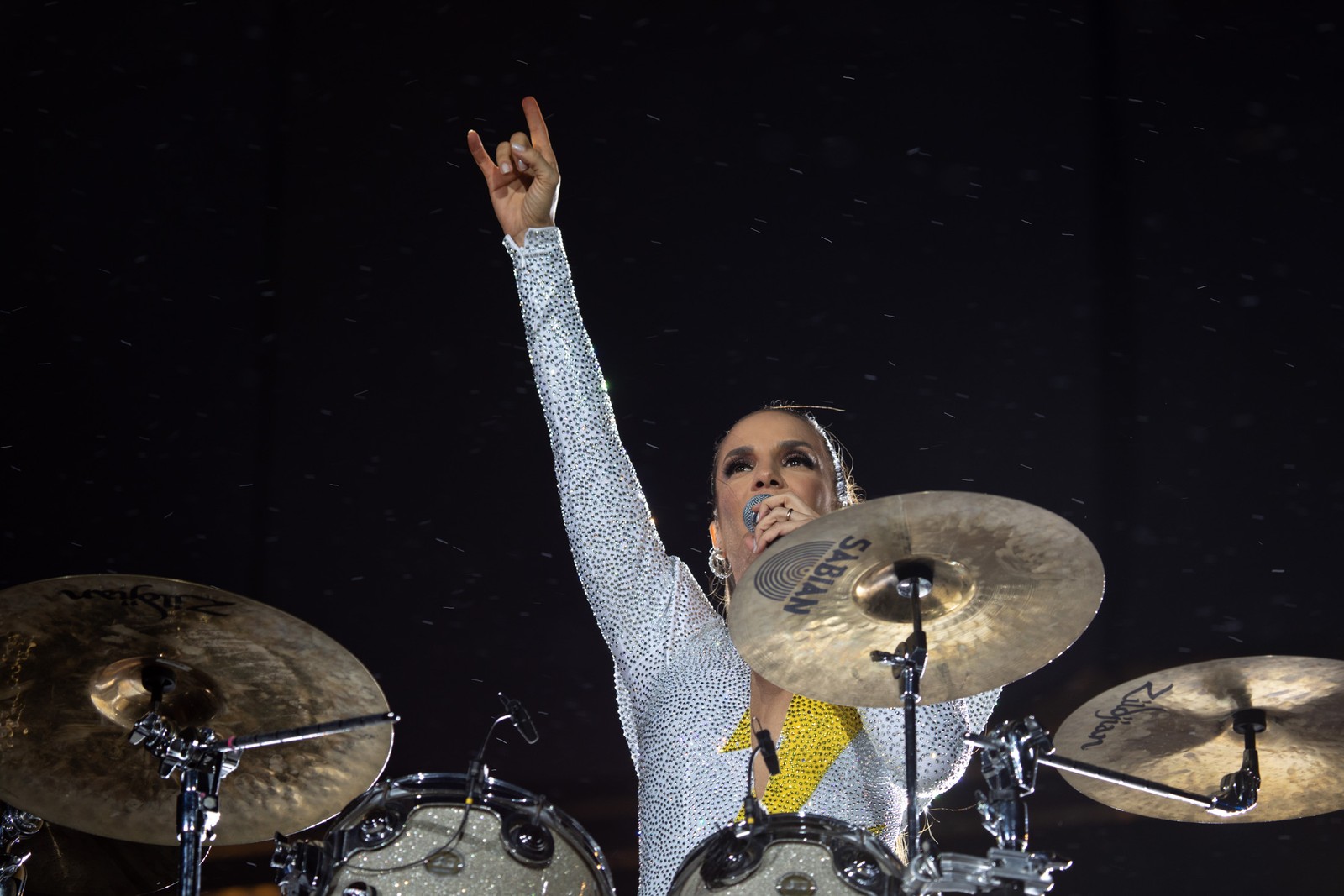 A rainha do axé foi a primeira atração do Palco Mundo no terceiro dia do Rock in Rio e empolgou o público com seus sucessos. Neste domingo (29), a cantora começou seu show tocando um solo de rock na bateria. Em seguida, a baiana cantou um de seus maiores hits, "Eva". "Hoje é dia de rock e de axé, bebê!", declarou ela. Ivete já cantou em quatro edições brasileiras do festival, além das participações no evento em Lisboa, Las Vegas e Madrid.