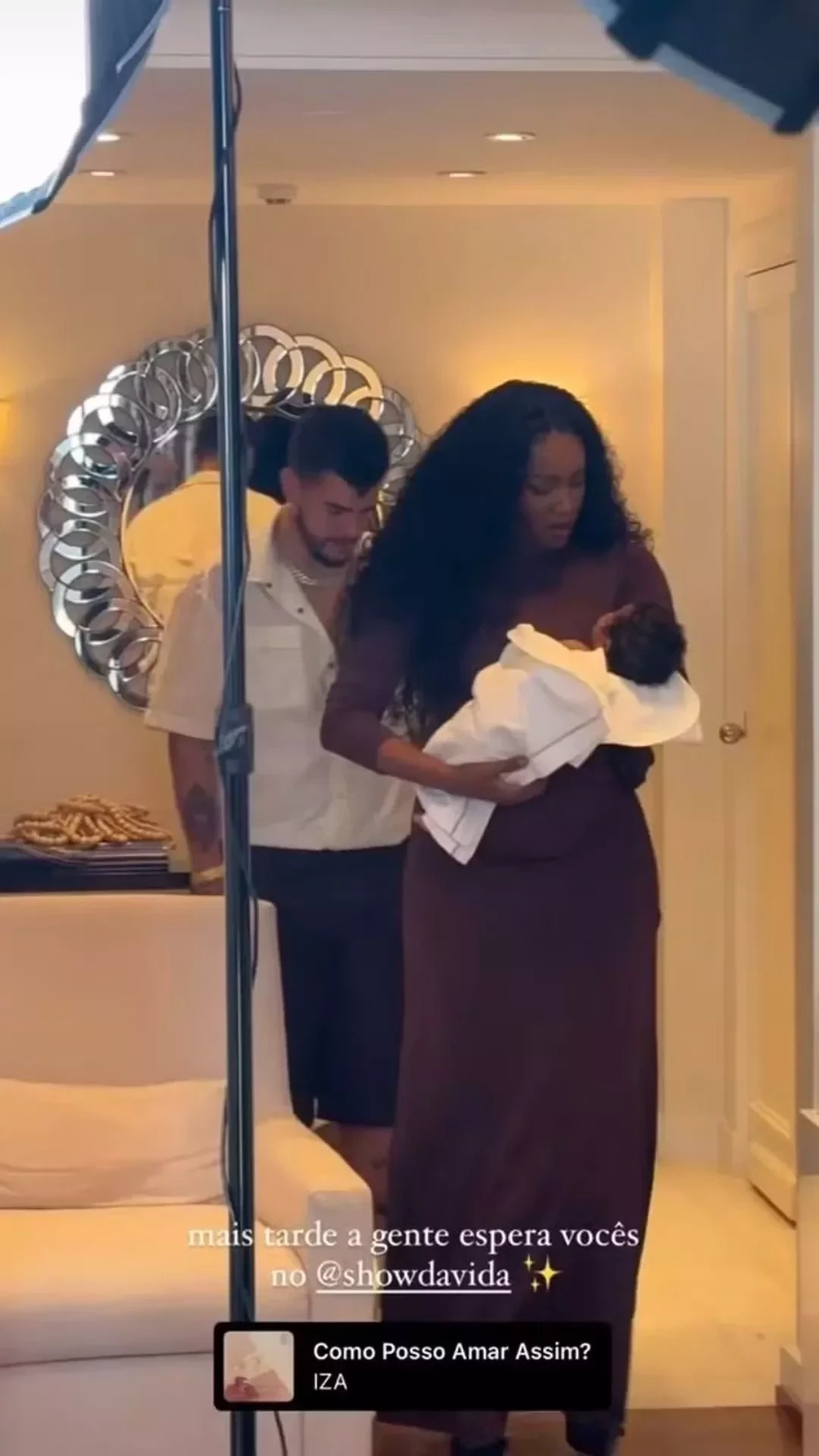 "Mais tarde a gente espera vocês no Show da Vida", publicou IZA em uma das fotos compartilhadas, que mostram Maju emocionada ao ver a bebê. Nos stories, a música escolhida para a trilha foi 'Como Posso Amar Assim?', uma dedicatória para a filha.