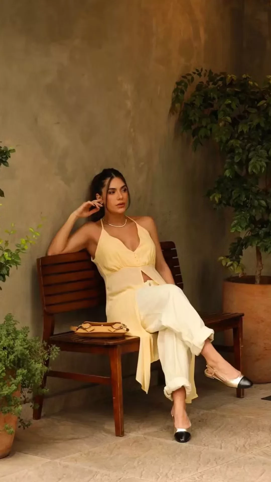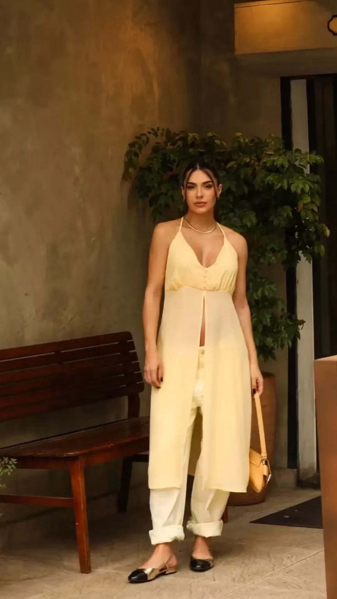 Grávida de Luan Santana, de 33 anos, a influenciadora Jade Magalhães, de 31, exibiu a barriga da sua primeira gestação ao mostrar o visual escolhido nesta segunda-feira (23): um vestido amarelo com decote, transparências e uma fenda na região abdominal.