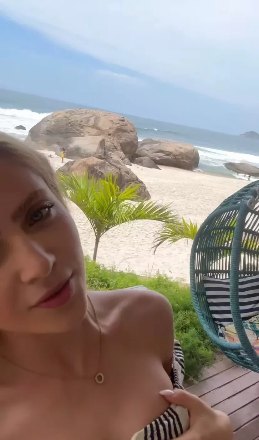 Jade optou por um biquíni preto bem cavado e na modelagem asa-delta. Ela contemplou o mar e ostentou o seu corpo de dar inveja enquanto curte um momento na praia. "Estou recebendo hoje uma amostra grátis do que vão ser minhas férias. Mar e sol. Quero mais nada", contou animada.
