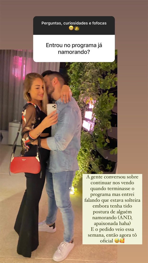 "A gente conversou sobre continuar nos vendo quando terminasse o programa, mas entrei falando que estava solteira, embora tenha tido postura de alguém que namora (AND apaixonada)", começou ela, falando sobre quando conversaram sobre levar o namoro para frente.