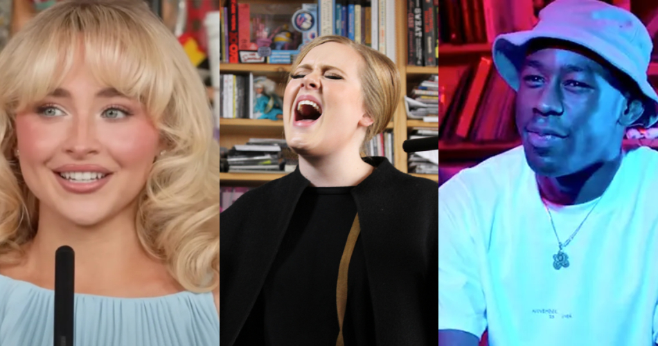 Sabrina Carpenter, Adele e Tyler The Creator no Tiny Desk. Foto: Reprodução/Youtube