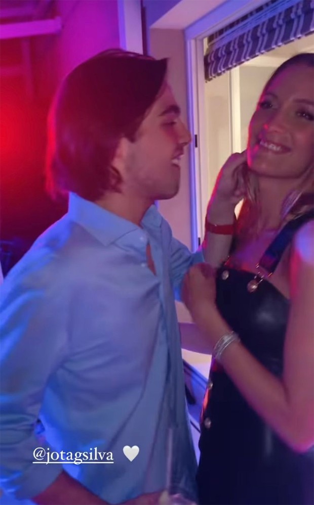 As imagens foram registradas pela própria modelo em seu Instagram, que mostrou o momento em que recebeu um "chega mais" do jovem, seguido do beijo romântico.