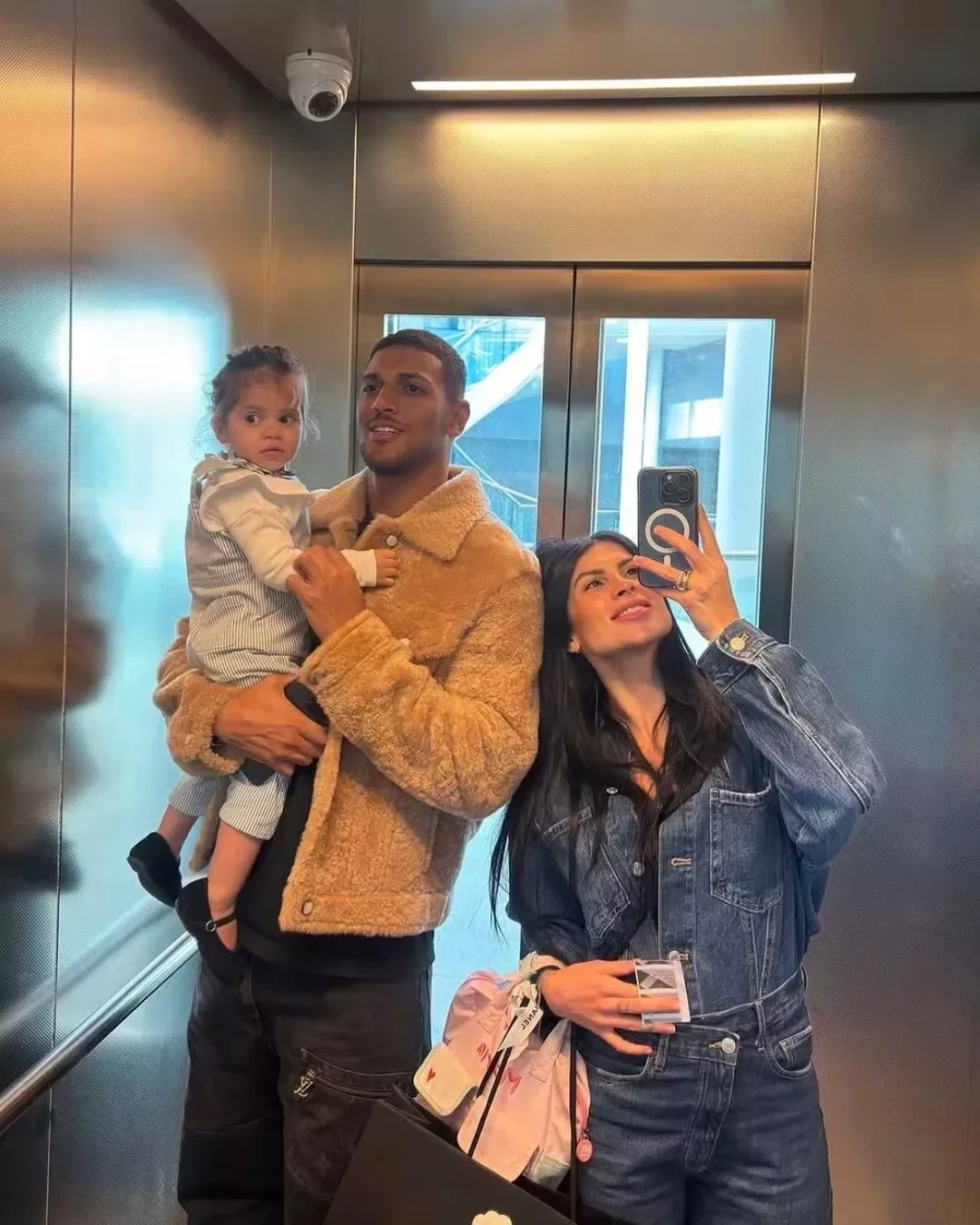 No Instagram, Isabelle publicou uma imagem no elevador ao lado do jogador e da filha e, na legenda, escreveu: "A vida ultimamente". Vinicius comentou a publicação com a frase: "Meus amores". Outros comentários de seguidores celebraram o momento. "Família linda e cheia da benção de Deus", escreveu uma usuária. "Mulher linda, família linda, tudo lindo", comentou outra.