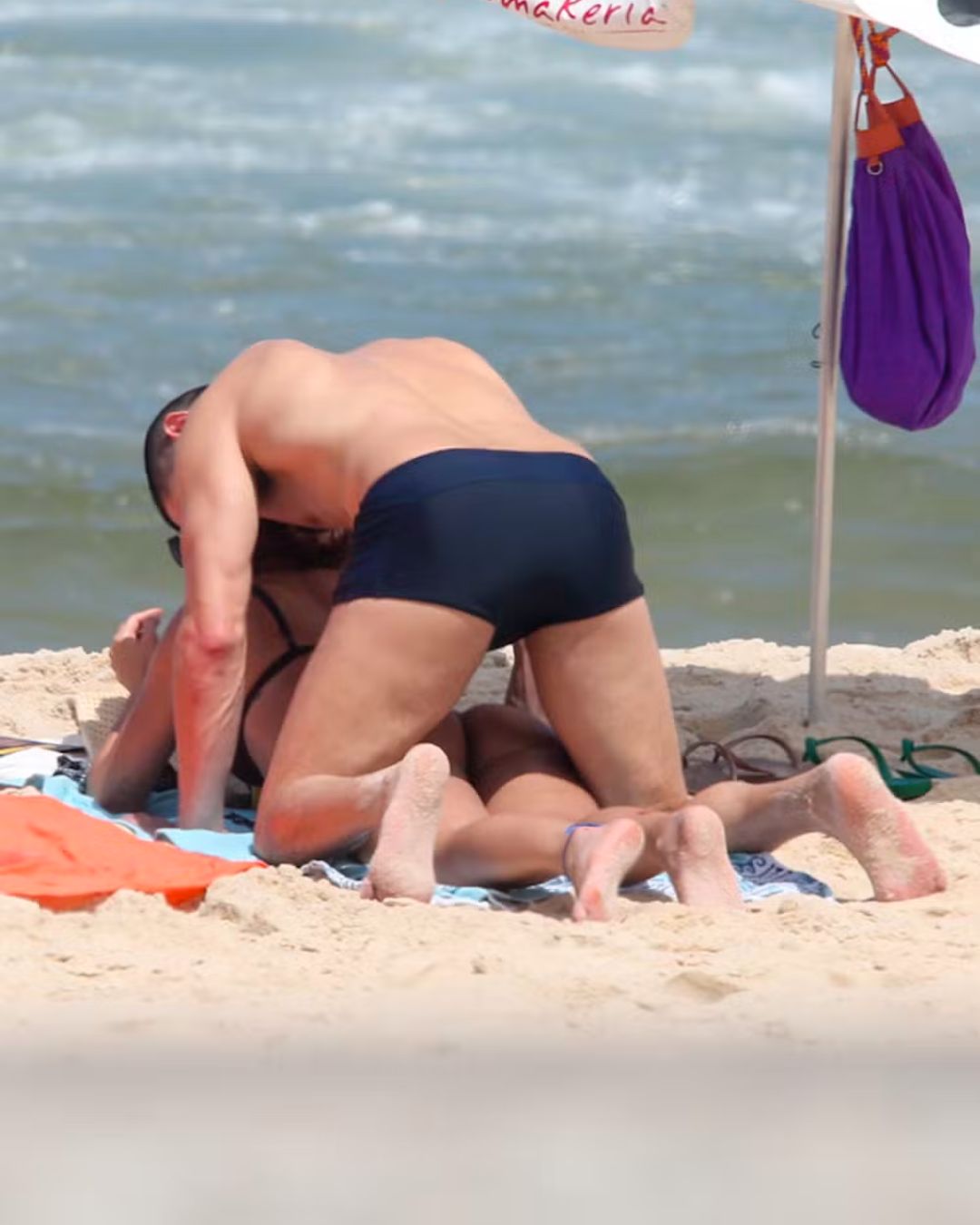 Após o mergulho, os dois decidiram renovar o bronzeado e passaram protetor solar antes de se deitarem na areia. Primeiro, Fernanda espalhou o produto no corpo do ator; depois, foi a vez de Loreto retribuir o gesto, em cenas que chamaram atenção pela intimidade, incluindo o momento em que ele aplica o creme no bumbum da parceira.