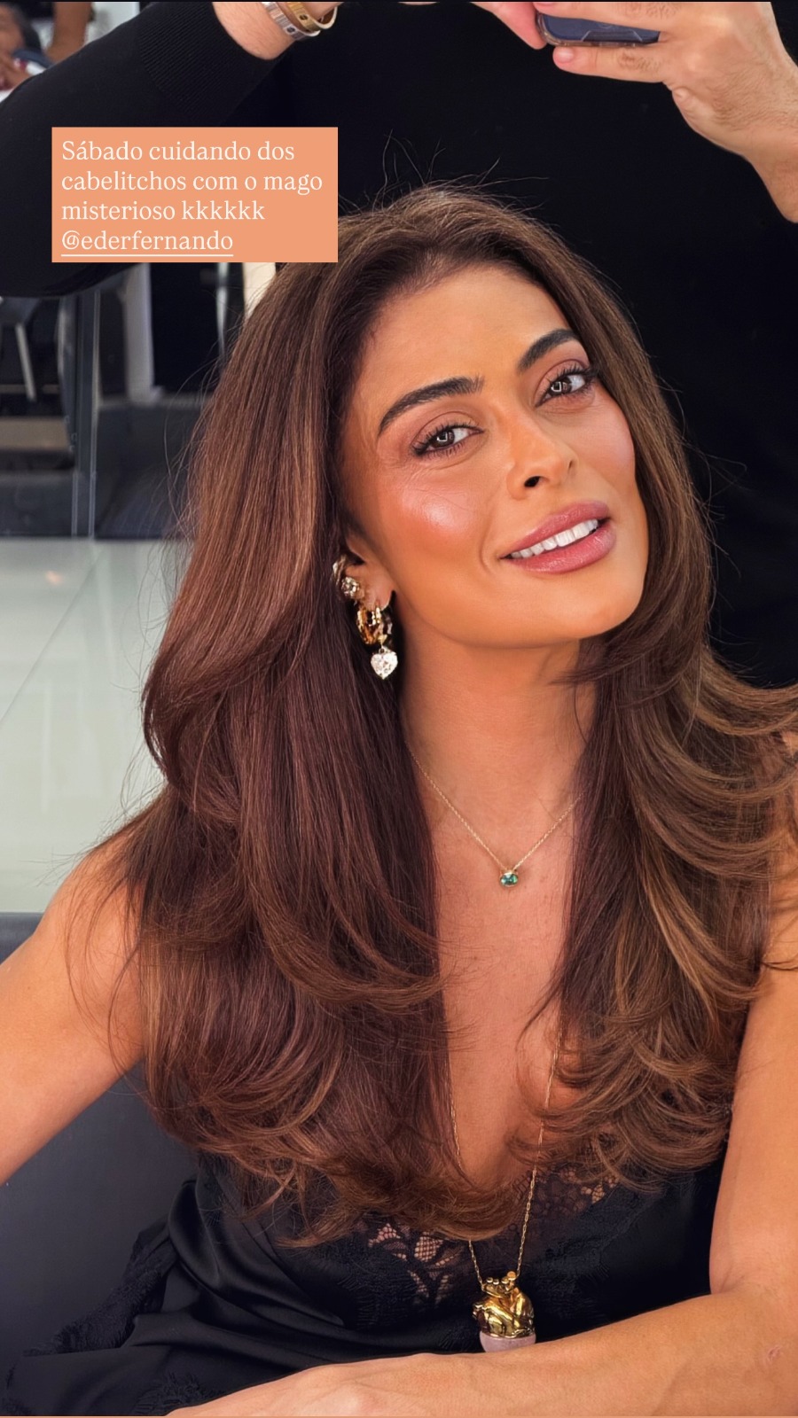 Juliana também aproveitou o dia para cuidar do visual em um salão de beleza. Foto: Reprodução