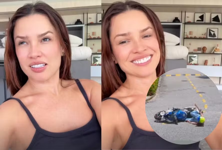 Juliette Freire enquanto estreava o presente, a BMW S 1000 RR avaliada em R$ 140 mil, que ganhou do noivo Kaique Cerveny, se desequilibrou e caiu enquanto pilotava a moto. A campeã do BBB21 mostrou o vídeo do momento em que se desequilibrou da moto e acabou caindo. Ela levanta logo em seguida, após receber ajuda de um homem.