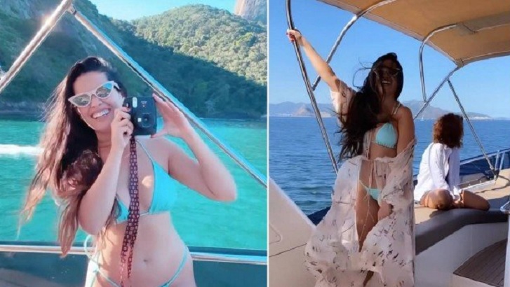 De biquíni a bordo, a paraibana se divertiu com direito a muita música, animação e, claro, mergulho.