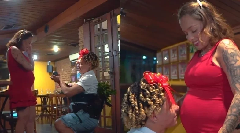 O pedido de casamento foi compartilhado nas redes sociais e chamou atenção pelo tom descontraído. Em um restaurante, Andyn apareceu fantasiado de forma divertida, com acessórios inusitados, flores e uma caixa de bombons, antes de se ajoelhar para fazer o pedido.