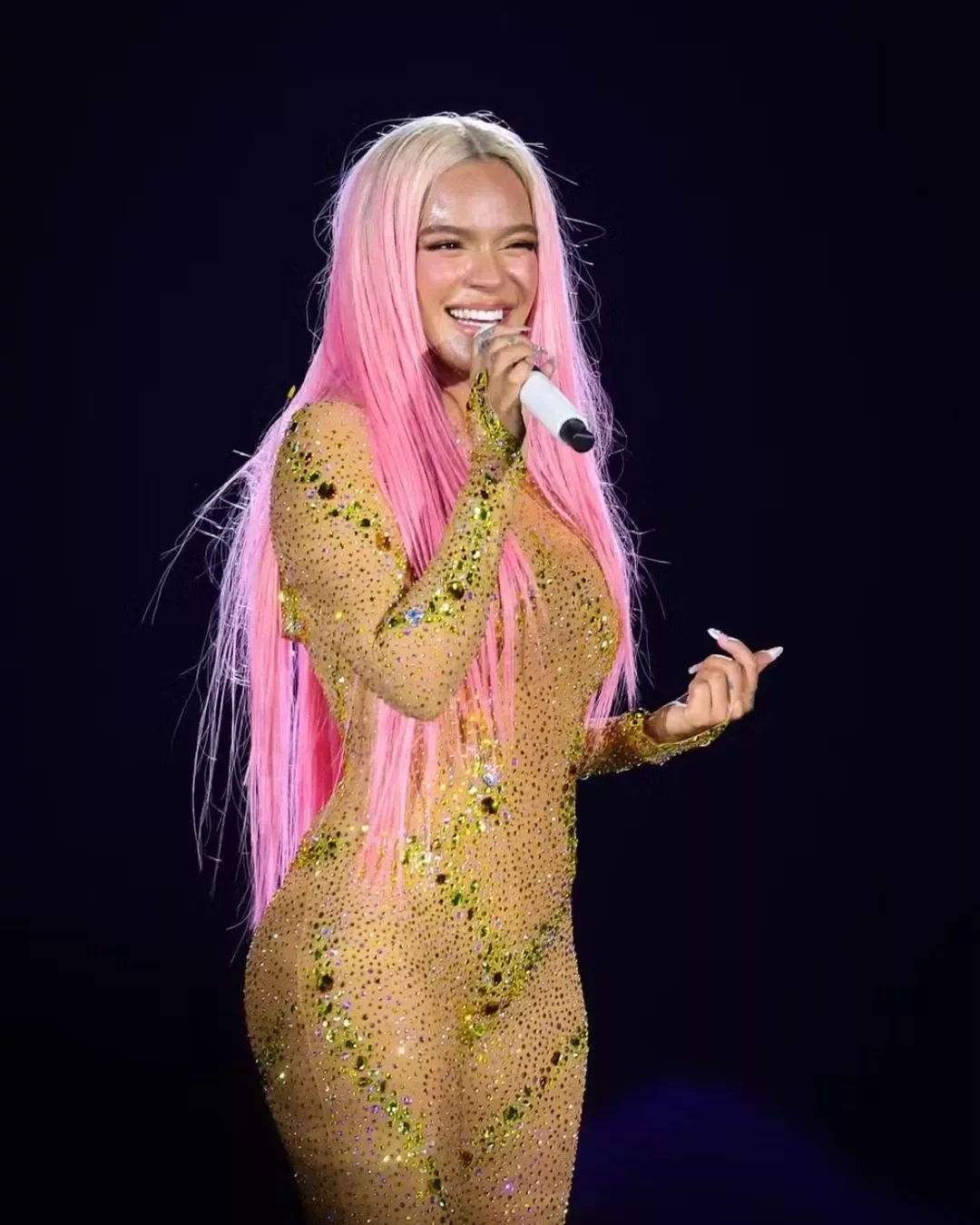 A cantora colombiana Karol G subiu ao palco montado em São Paulo nesta sexta-feira (10). Em sua única apresentação no país, com a casa cheia, ela reuniu tanto fãs quanto celebridades para entoar seus hits no espetáculo da turnê MAÑANA SERÁ BONITO.