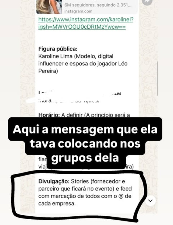 Karoline Lima expõe organizadora de festa. Foto: Instagram