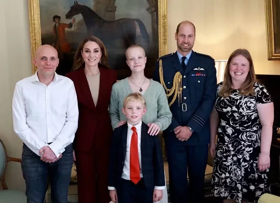 Kate recebeu Liz Hatton, de 16 anos, que trata de um agressivo e raro tumor.A adolescente foi convidada por William para acompanhar uma cerimônia de investidura, onde ele entrega reconhecimentos sociais em forma de medalhas a súditos, que contou com nomes como Mark Cavendish , Waynes Barnes e Alistair McCoist.