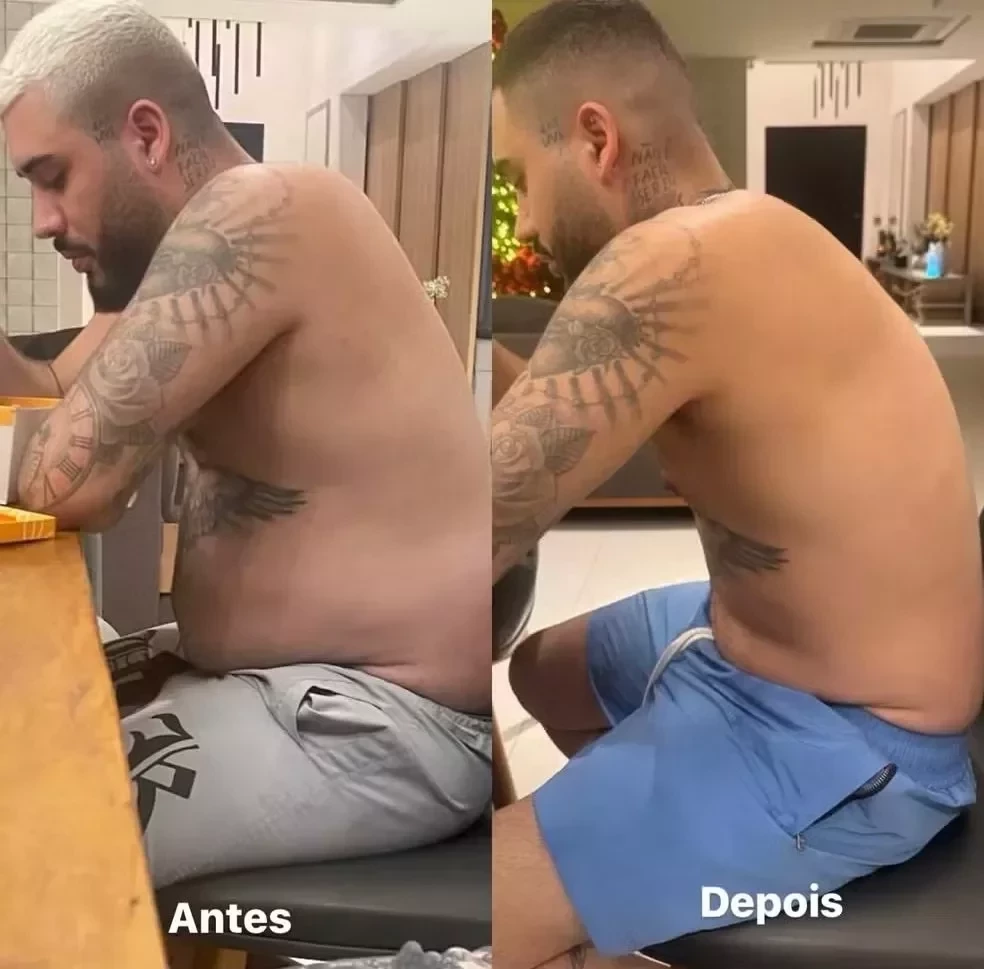 O cantor também compartilhou imagens de seu corpo, mostrando o ganho de peso durante o período difícil. Ele comparou uma foto atual com uma de um ano atrás, destacando os 14 quilos que perdeu desde então. “Logo após a notícia do diagnóstico da minha mãe, me afundei numa depressão gigante, o medo, as incertezas, faziam eu descontar tudo na comida”, explicou.