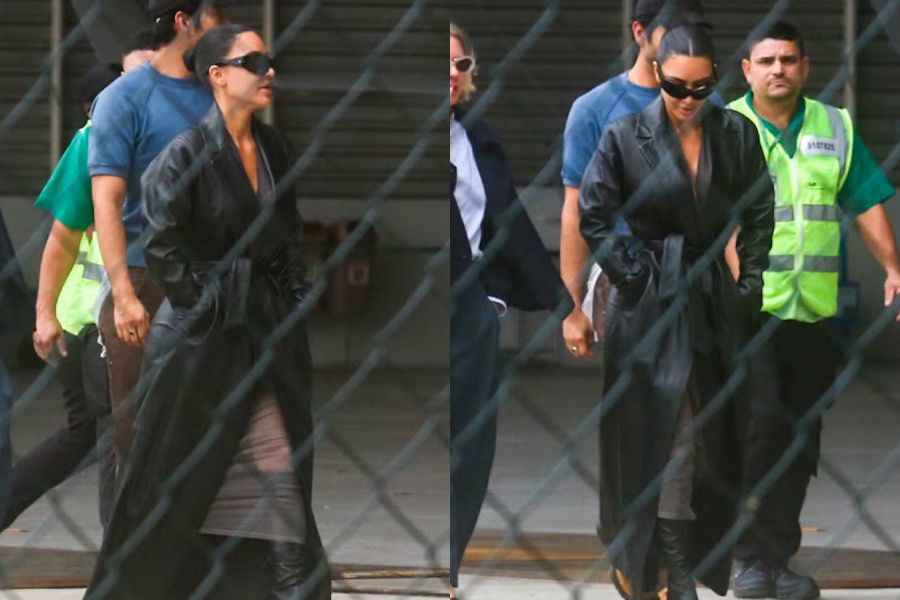 O look contou ainda com um vestido longo e justo, com leve transparência. Nos pés, Kim optou por um salto de dedos. Apesar de simples, a Kardashian chamou atenção nos cliques feitos no aeroporto.