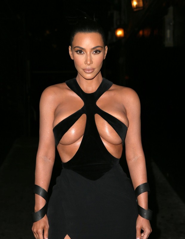 Kim Kardashian ousou no look escolhido para ir a um evento neste domingo (18)! A empresária e socialite usou um pretinho nada básico, com recorte nos seios, que cobriam apenas os mamilos, para a premiação de beleza Hollywood Beauty Awards.