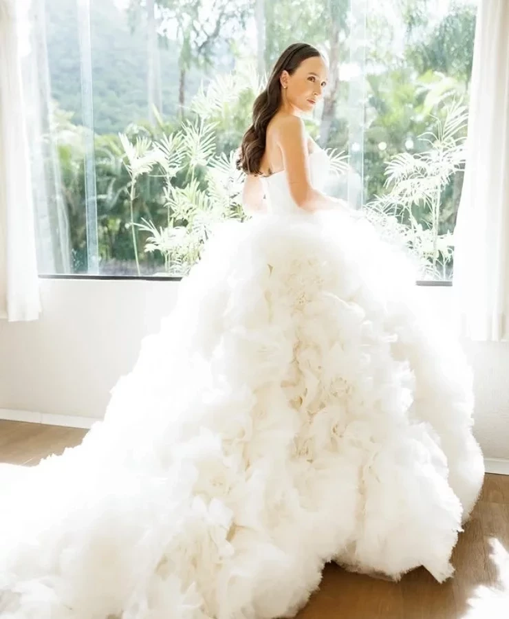 Em seu feed na rede social, ela compartilhou registros dos bastidores do casamento, nos quais aparece arrumando o cabelo, fazendo a maquiagem e posando ao lado de seu vestido de noiva. Larissa aproveitou ainda para agradecer seu maquiador.