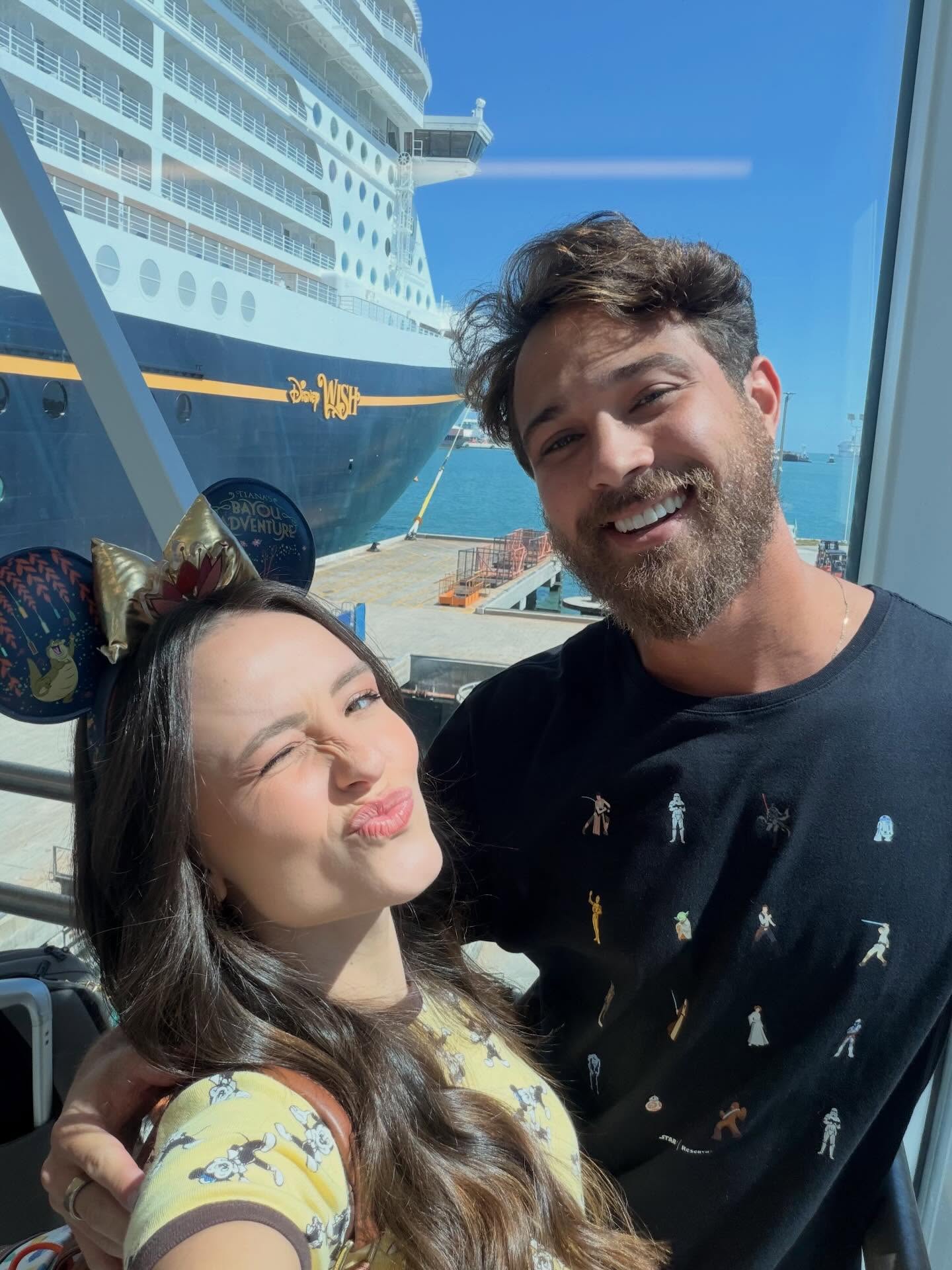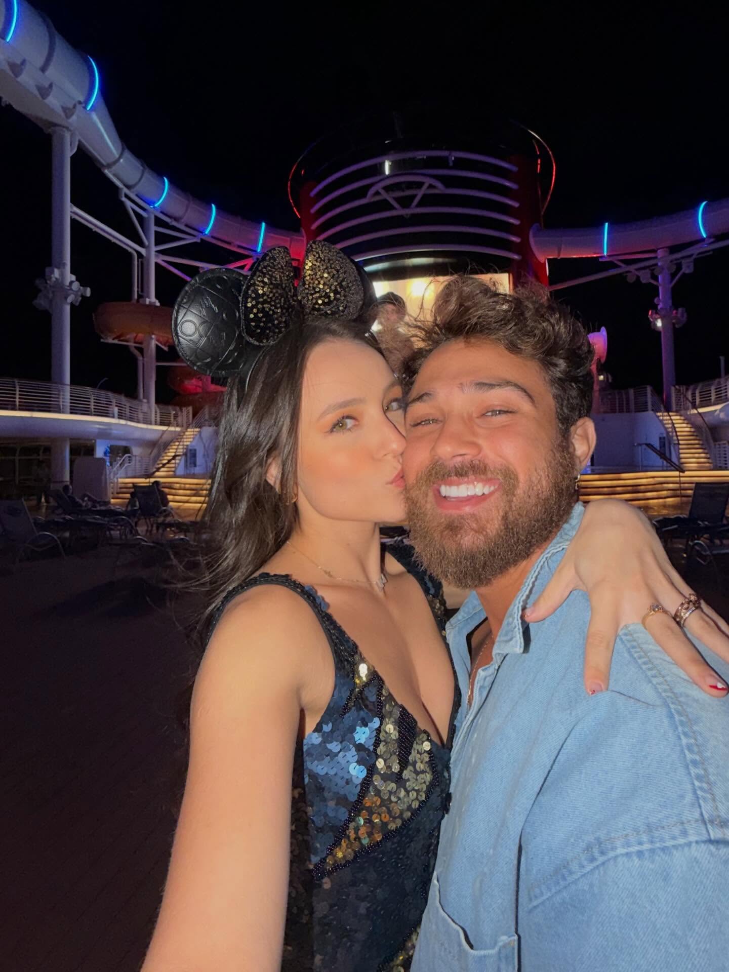 Nas redes sociais, a atriz publicou um albúm de fotos no cruzeiro temático da Disney e celebrou o momento especial ao lado do amado. “A bordo do Disney Wish 🚢❤️⚓️ Onde o sonho e a magia se realizam em alto mar”, escreveu ela na legenda.