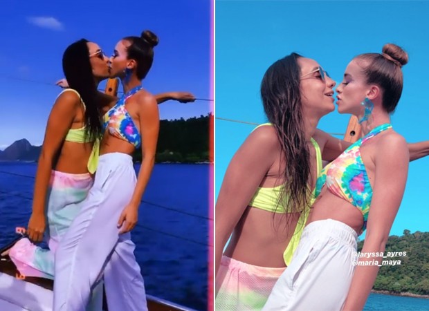 Laryssa Ayres apareceu dando aquele beijo na namorada, Maria Maya, durante celebração de seu aniversário. A atriz completou 23 anos de idade no último 4 de março e decidiu reunir a amada e amigos em um passeio de barco para comemorar. Durante a festa, ela mostrou momentos românticos, dançou até o chão e posou para fotos e vídeos.