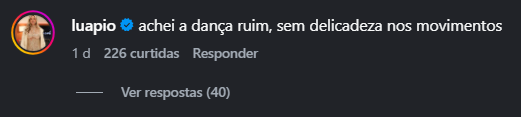 “Achei a dança ruim, sem delicadeza nos movimentos”, escreveu Luana Piovani no post.