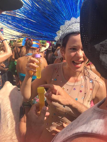 Apaixonada por carnaval de rua, Leandra Leal começou esse sábado curtindo um bloco alternativo em Santa Teresa, na Zona Central do Rio. Vestindo um maiô nude, a atriz curtiu o cortejo animada ao lado de amigos. Simpática, ela atendia aos pedidos de foto dos foliões e desceu até o chão ao som da bateria.
