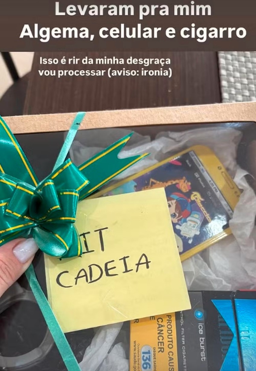 Lins ironizou a condenação ao mostrar uma caixa que recebeu, apelidada de "Kit Cadeia", contendo uma algema, um celular e uma caixa de cigarros, envoltos por uma fita nas cores da bandeira do Brasil. Em tom sarcástico, o humorista escreveu nos stories.