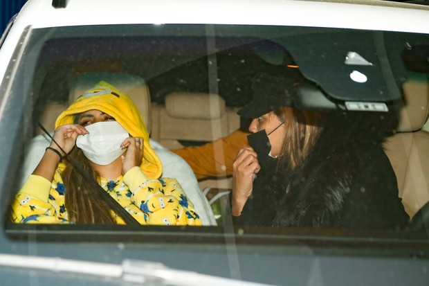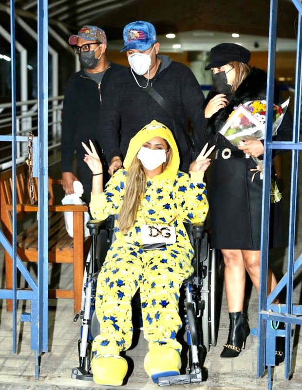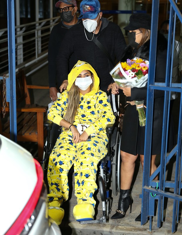 De cadeira de rodas e máscara de proteção por conta da pandemia da Covid-19, Lexa estava animada e acenou para as câmeras ao deixar o local. Ela ainda estava com um agasalho amarelo estampado com imagens dos personagens minions e uma bolsa da grife Dolce & Gabbana.