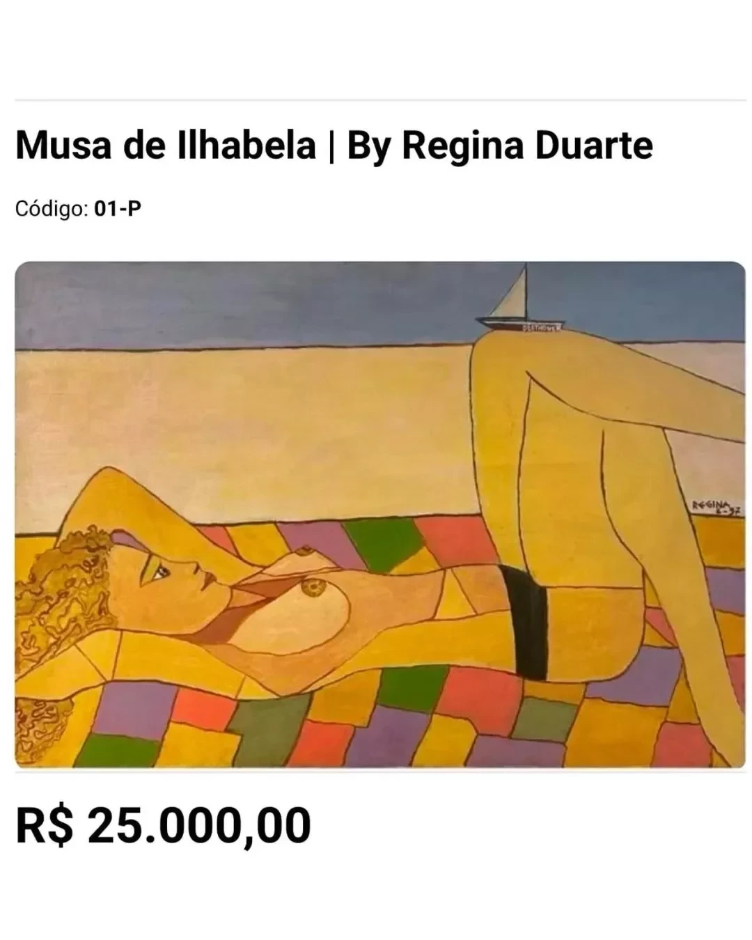 No espaço virtual denominado Regina das Artes, são disponibilizados para venda quadros, colagens, cartões e ecobags que exibem as pinturas da atriz de 78 anos, que já foi conhecida como namoradinha do Brasil. Os valores variam entre R$ 30, referentes a um cartão postal ilustrado com uma de suas obras, e R$ 25 mil por uma pintura assinada por Regina Duarte.