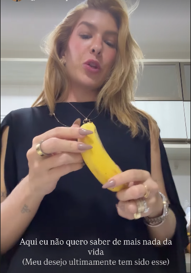 Nos stories do Instagram, Lore contou que esta gestação tem sido bem diferente da anterior e divertiu os fãs ao falar sobre seu novo desejo: comer banana com leite em pó.