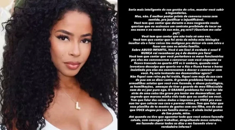 Ao comentar a estratégia adotada pelo artista nas redes sociais, a influenciadora criticou a exposição de conversas privadas. “Seria mais inteligente da sua gestão de crise mandar você subir o Legendários, mas, não... É melhor postar prints de conversa nossa sem sentido para justificar o injustificável.”