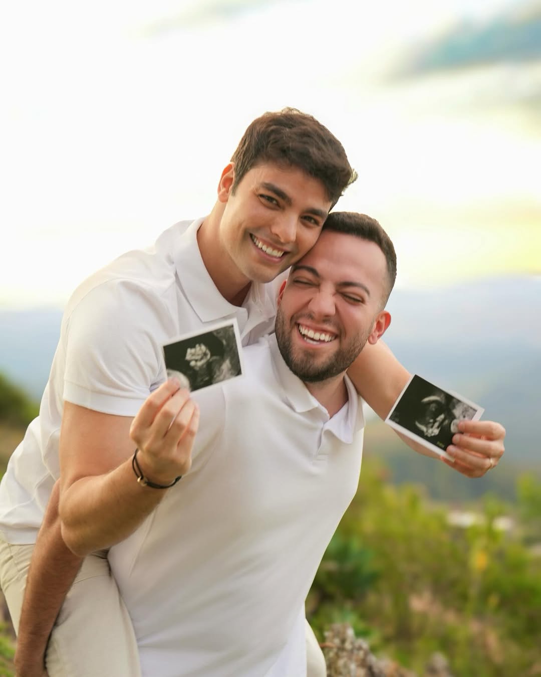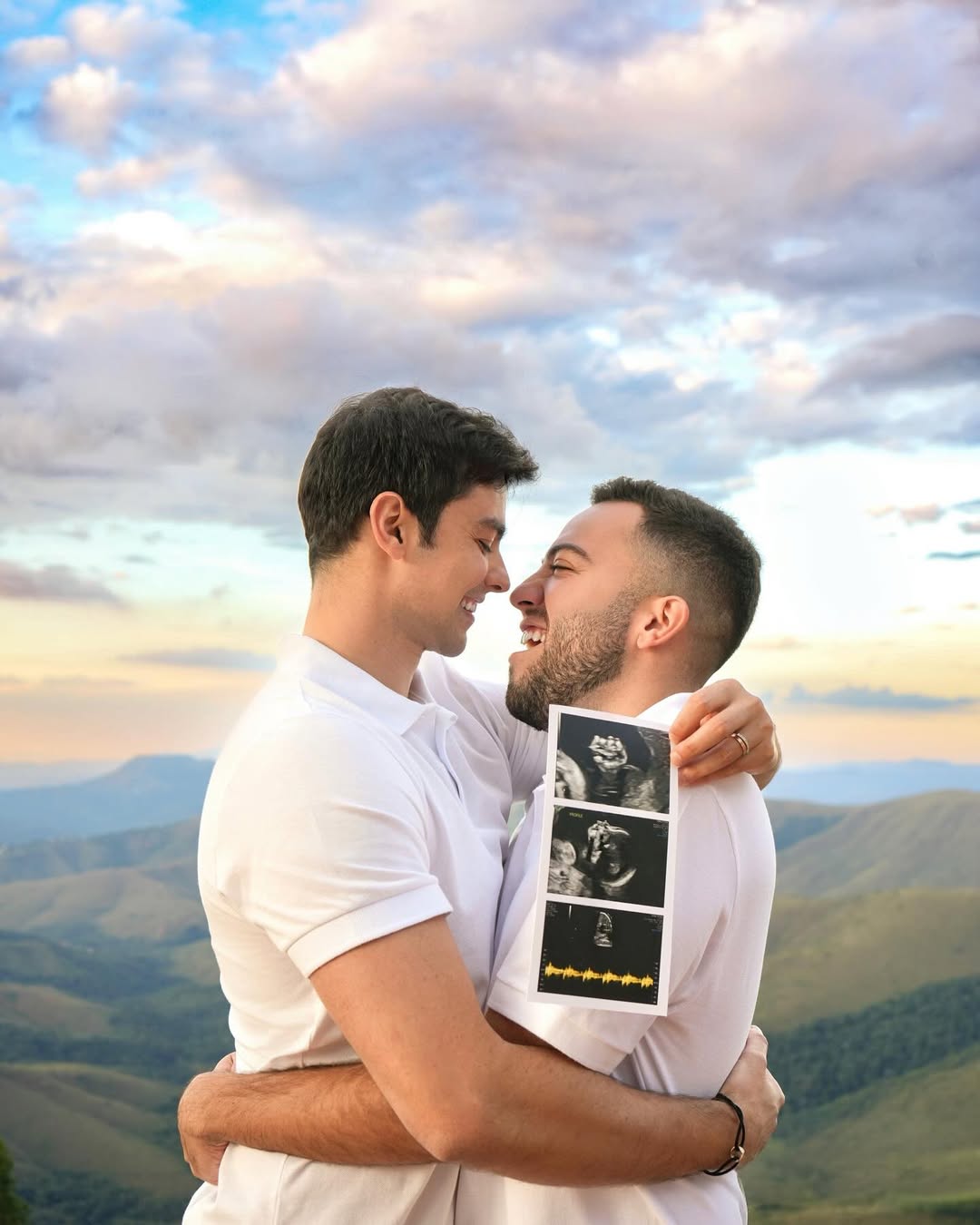 Lucas Rangel e Lucas Bley celebraram, neste domingo (8), o sexto mês de gestação do primeiro filho. Pelo Instagram, o casal compartilhou o momento especial e exibiu a barriga da mulher que está gerando o bebê. Apesar das imagens indicarem o uso da técnica de útero de substituição — conhecida popularmente como barriga de aluguel —, o casal ainda não confirmou oficialmente o método utilizado.
