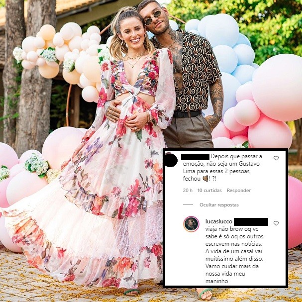Ao postar um registro da esposa grávida, Lucas Lucco recebeu um comentário de um seguidor, que pedia que ele não fosse um Gusttavo Lima, que recentemente se separou de forma polêmica de Andressa Suita, mãe de seus dois filhos.