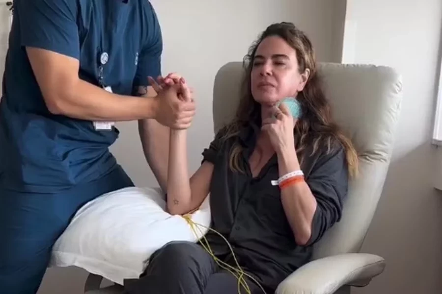 Luciana Gimenez, de 55 anos, compartilhou com seus seguidores neste sábado (15) registros de sua sessão de fisioterapia, realizada no quarto do Hospital Israelita Albert Einstein, em São Paulo. A apresentadora precisou passar por uma cirurgia de emergência na cervical na sexta-feira (14), após dias intensos durante o Carnaval de 2025.