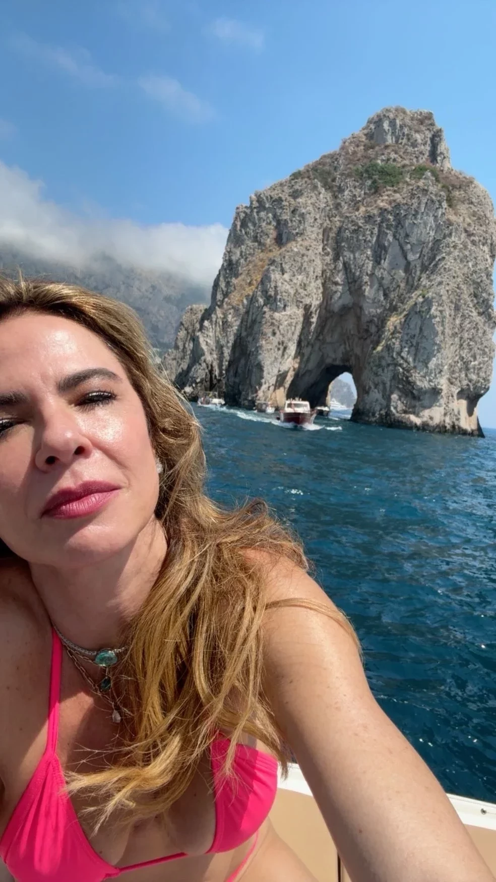 Luciana Gimenez está de férias, e esta quarta-feira (24) marca o início de sua estadia na ilha de Capri, na Itália, onde ela decidiu aproveitar seu período de descanso. Pela manhã, ela foi fotografada de biquíni enquanto se preparava no quarto do hotel e, em seguida, fez novas fotos durante um passeio de barco.