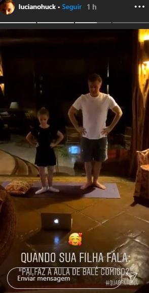 Nesta quinta-feira (07) Luciano Huck gravou um vídeo em suas redes sociais dançando balé ao lado da filha caçula, Eva, de 7 anos.