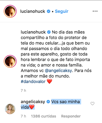Na legenda o apresentador comentou: "No dia das mães compartilho a foto do protetor de tela do meu celular...ja que bem ou mal passamos o dia todo olhando para este aparelho, gosto de toda hora lembrar o que de fato importa na vida; o amor e nossa família. Amamos vc @angelicaksy. Para nós a melhor mãe do mundo. #dandovalor ❤️."Escreveu o apresentador.
