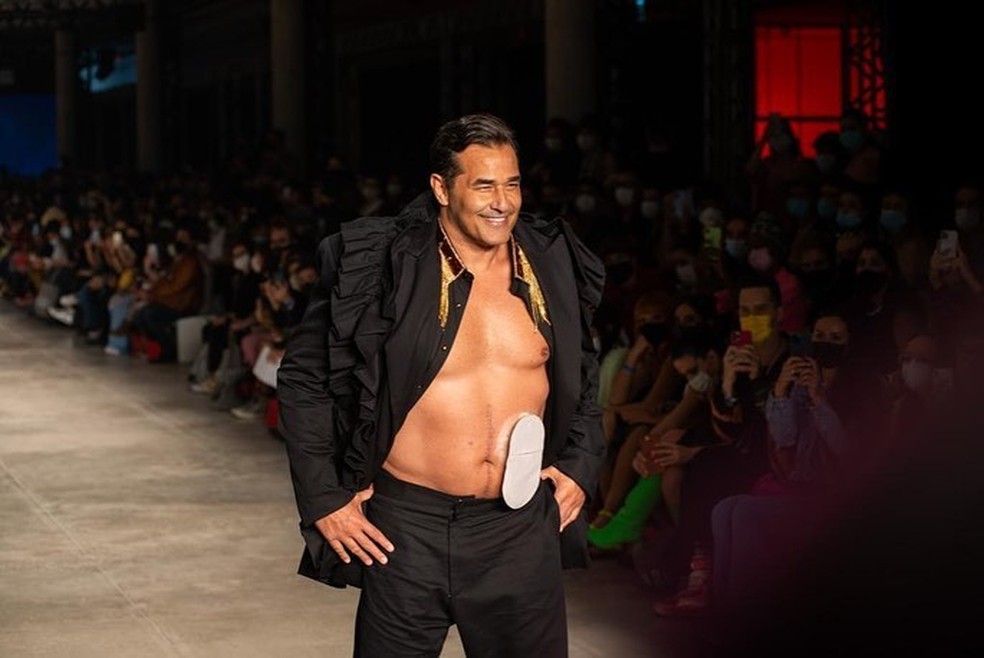 Luciano Szafir desfilou com bolsa de estomia na SPFW Foto: Reprodução-Instragram
