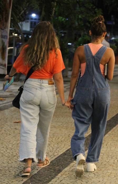 As duas sairam do restaurante de mãos dadas, após jantarem em um restaurante. Foto: Extra