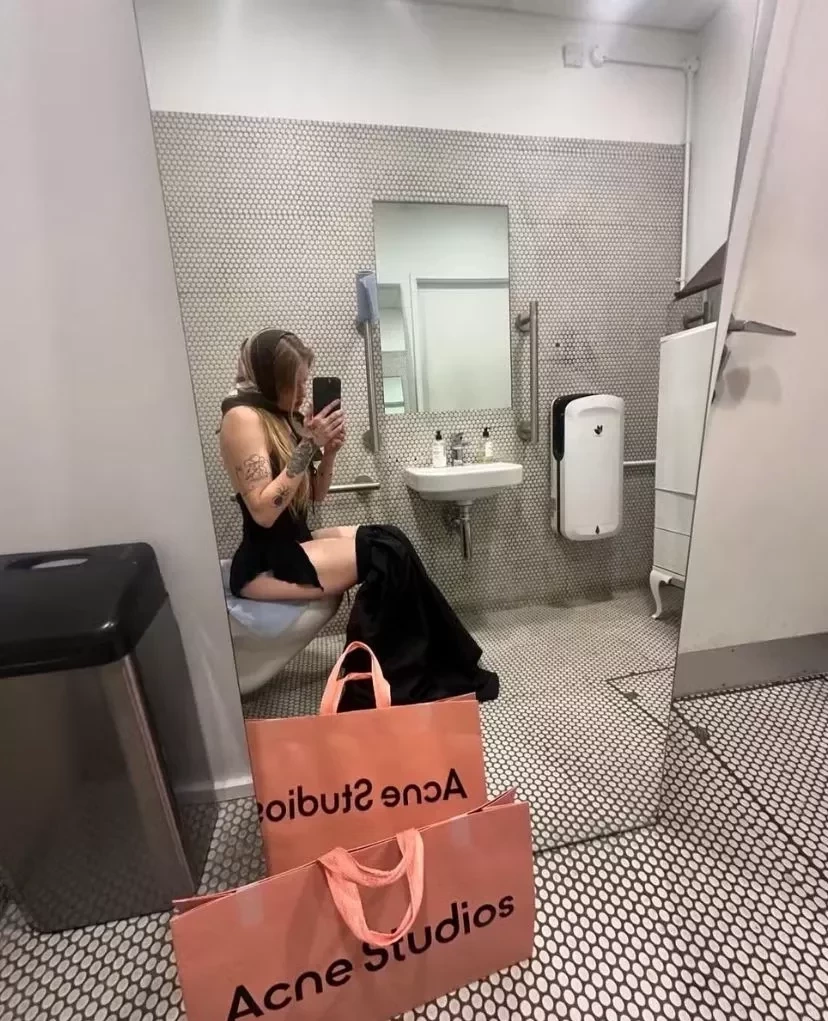 Uma foto que chamou atenção foi a que Sonza aparece sentada no vaso sanitário. Em outro clique, ela aparece usando uma blusa de renda transparente sem lingerie por baixo e uma calça jeans com aspecto de sujeira - moda já aderida por outras famosas como Isabella Scherer.