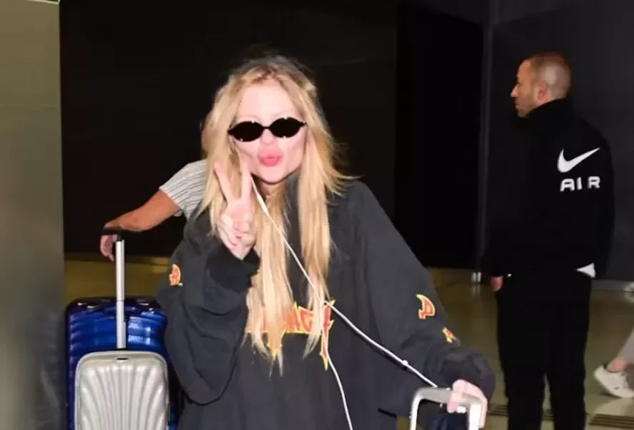 A cantora esbanjou simpatia ao sorrir e fazer um sinal de paz para o paparazzo presente no local. Ela vestia um look confortável e estiloso, composto por calça jeans larga, moletom preto com capuz e óculos escuros. Sozinha, ela foi vista arrastando suas próprias malas pelo aeroporto.