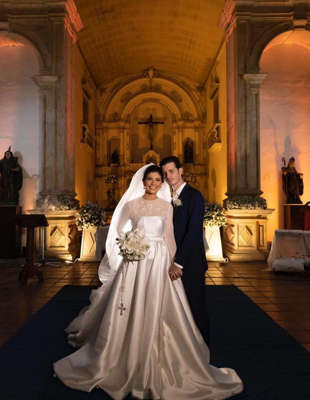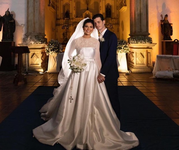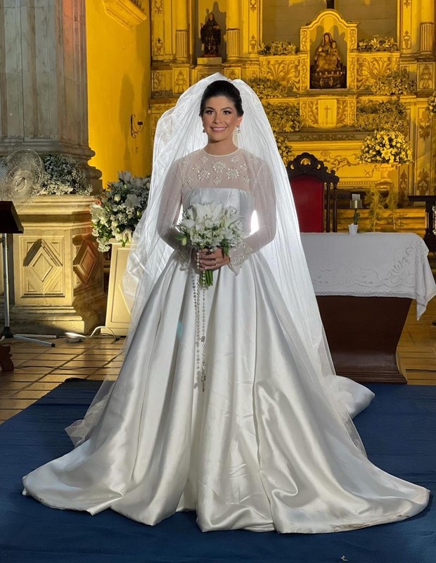 “Diante de Deus, permanecendo na fé! Te amo, marido!”, escreveu ao publicar fotos da cerimônia religiosa com o empresário David Lira.