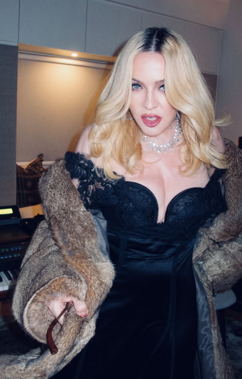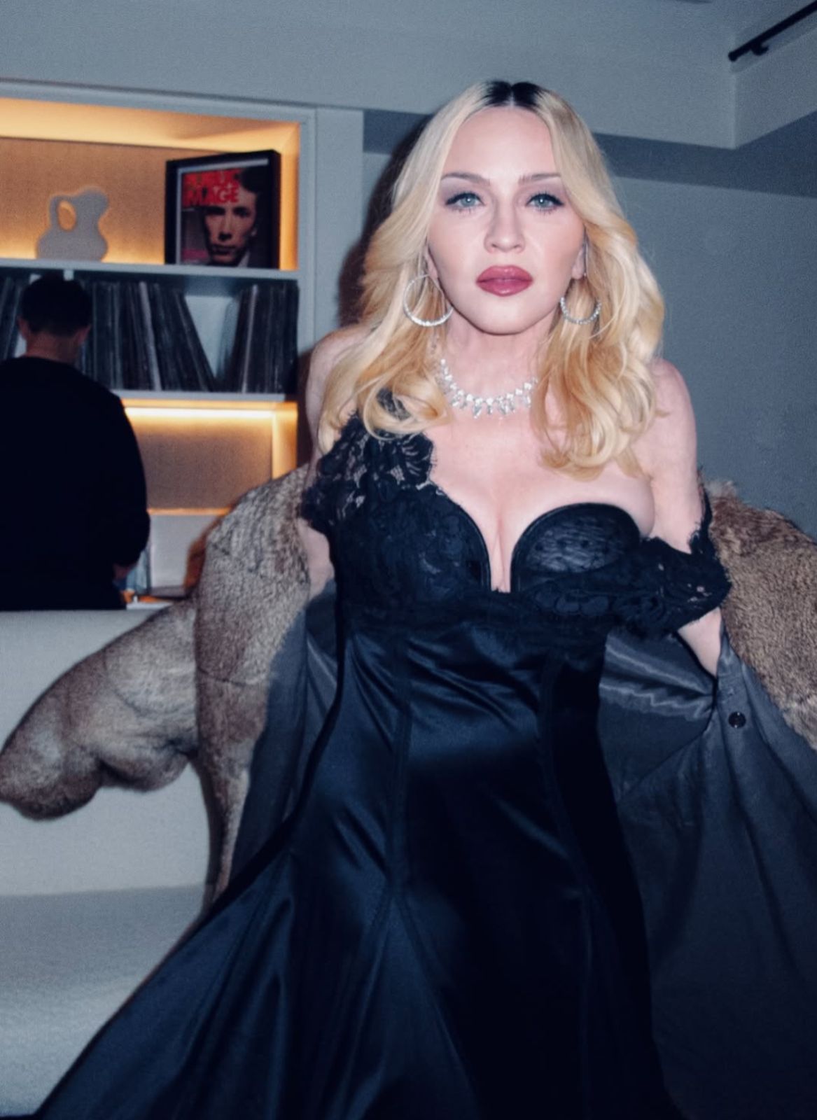 Madonna, de 67 anos, movimentou as redes sociais nesta terça-feira (25) ao compartilhar fotos inéditas usando um vestido preto com decote marcante. A cantora também apareceu com joias prateadas e um casaco de pele marrom, chamando atenção pela produção elegante.