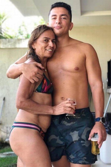 No último domingo (17), Miram Macedo, mãe de Anitta, posou de biquini ao lado do filho Renam, que cuida da carreira da cantora.